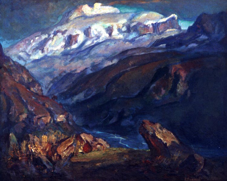 Но каково утро на Бермамыте, откуда писали Эльбрус Лермонтов и Ярошенко! В низшие трепыхаются последние клочья облаков, розовый свет утра залил вечные ледники могучего кавказского исполина, снег у станции начал стремительно таять и еще зеленая трава заиграла в первых лучах солнца ослепительными блестками влаги, словно кто-то рассыпал здесь самоцветы... А тут воспрянувшие после вчерашнего туристы вытащили старенький проигрыватель, поставили пластинку и полилась в заоблачной тишине дивная музыка Чайковского. Виталий, спохватившись, бросился на станцию за этюдником, боясь упустить драгоценные минуты, пока краски горного пейзажа, яркие и свежие, не успели померкнуть, раствориться в рекахсолнечного света, установил холст на подрамнике... И вдруг непрошеные слезы умиления хлынули из глаз. Попытки запечатлеть увиденное показались настолько тщетными, что он бросил кисть и заплакал, как ребенок...